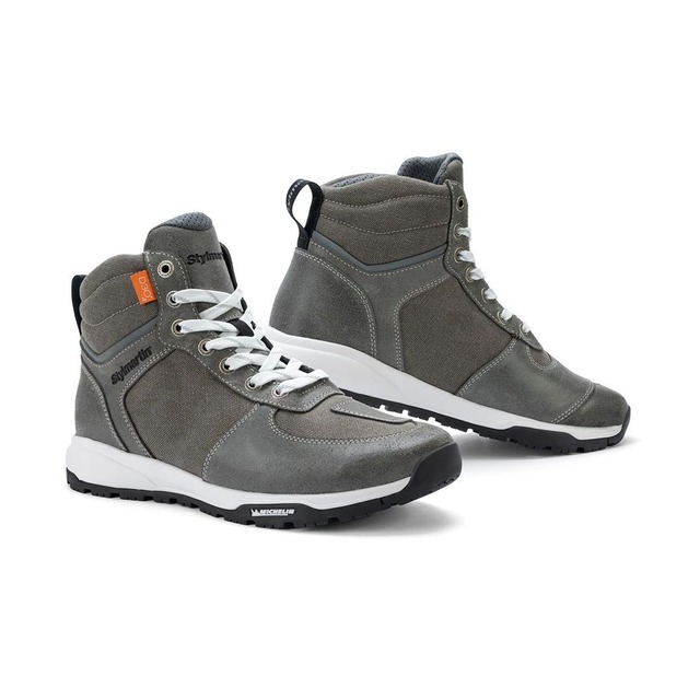 イタリアの靴職人が作り上げる美しいデザインと高機能、そして安全性。スティルマーティンのブーツは一度手にしたら忘れられない履き心地と、マシンを降りても違和感のない、美しいデザイン、安心の堅牢性、軽さ、そしてコストパフォーマンスの良さで本物を求めるお客さまに愛されています。 VERTIGO(ヴェルティゴ)シリーズは、アウトドアを愛するライダーのために全く新しく開発されたライディングシューズです。「トラクション」と名付けられたラバーソールは専用に開発され、マシンを降りて野山を散策するときにも安定したグリップを発揮します。通気性の良い快適なアウトソール、履き心地がたまらないインソールに加えて、D3Oをくるぶしに配し、高い安全性も誇ります。 GREY(グレー)は、ライトなイメージで街にも溶け込むグレーのアウトソールが特徴です。機能はそのままに、お好みのカラーでアウトドアをハイクしましょう。メッシュ地の裏に透けて見えるオレンジがおしゃれですね! やや細身のシェイプですから、普段お選びのサイズよりもワンサイズ上を選んでいただいてもいいかと思います。モータリストファクトリーならもちろん試し履きができます。ないサイズもご予約ただければそれほどお待たせせずに入手可能ですよ。ご予約の際はお問い合わせ欄からぜひメッセージをお願いします!