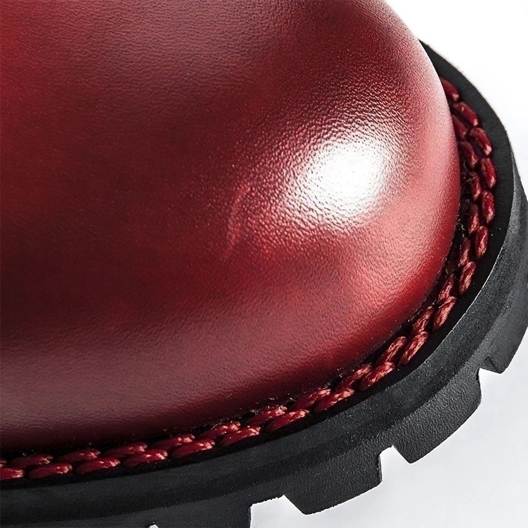 CONTINENTAL(コンチネンタル)シリーズは、ビンテージ・オフロードイメージをくすぐる、4本のベルトストラップをボタン止めするクラシックないでたちが魅力。プレーンなデザインの美しさが光ります。スタイルはレトロながら、機能は最新。インソールはもちろん吸湿性も高く、吸気性に優れた驚くほどの履き心地。アウトソールは「ビブラム」のアンチ・スリップラバーですから、リアル・オフロードでも安心の接地感ですね。アッパーはフルグレーン・レザー。美しいレッドに染め上げられたお洒落なブーツ、ぜひ履きこなしてください。